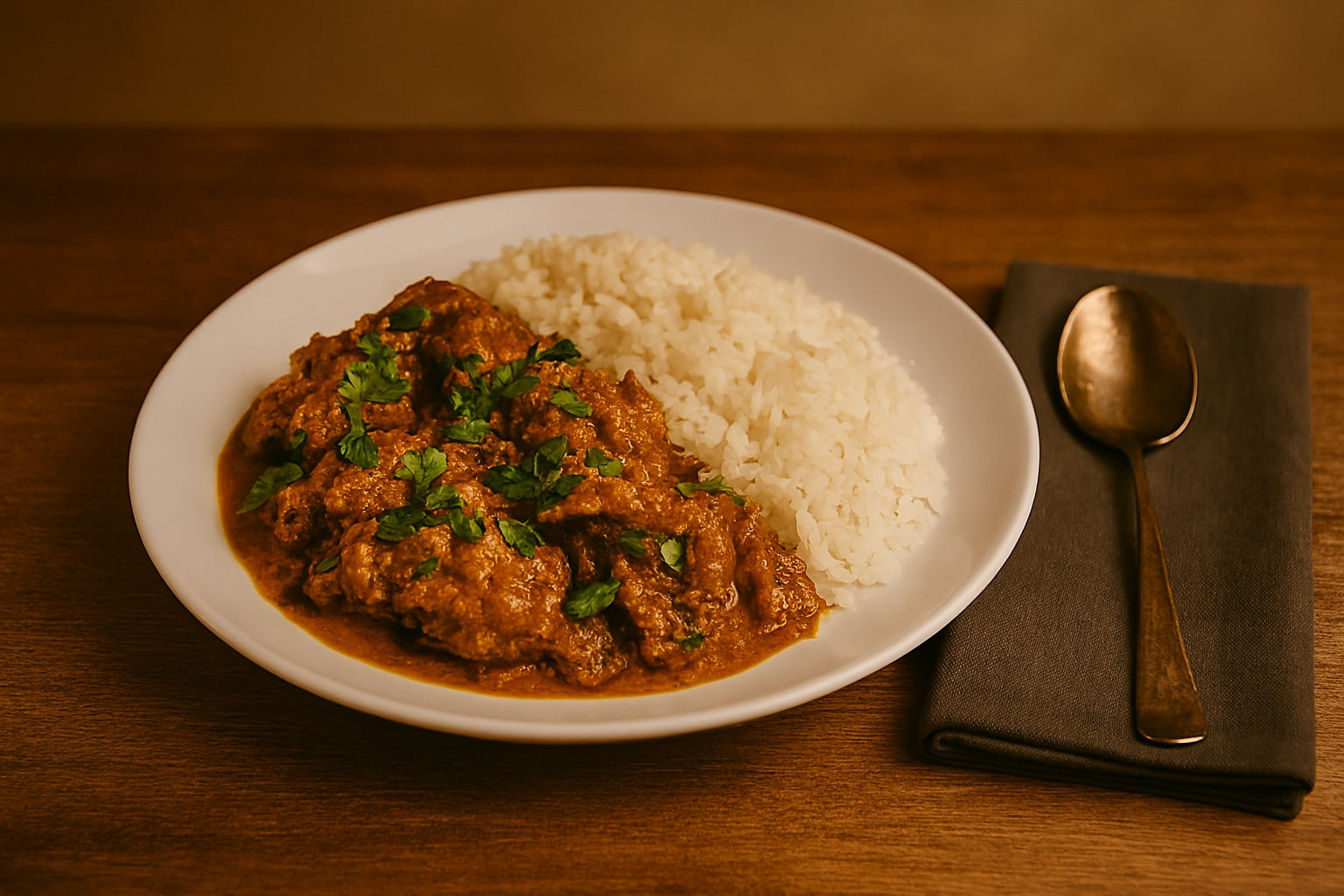 Tender chicken cooked in creamy peanut sauce with coconut milk.